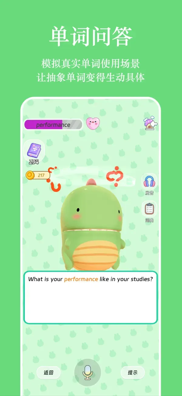 语音跟读:提供标准发音示范,带语音识别功能,能纠正发音错误
