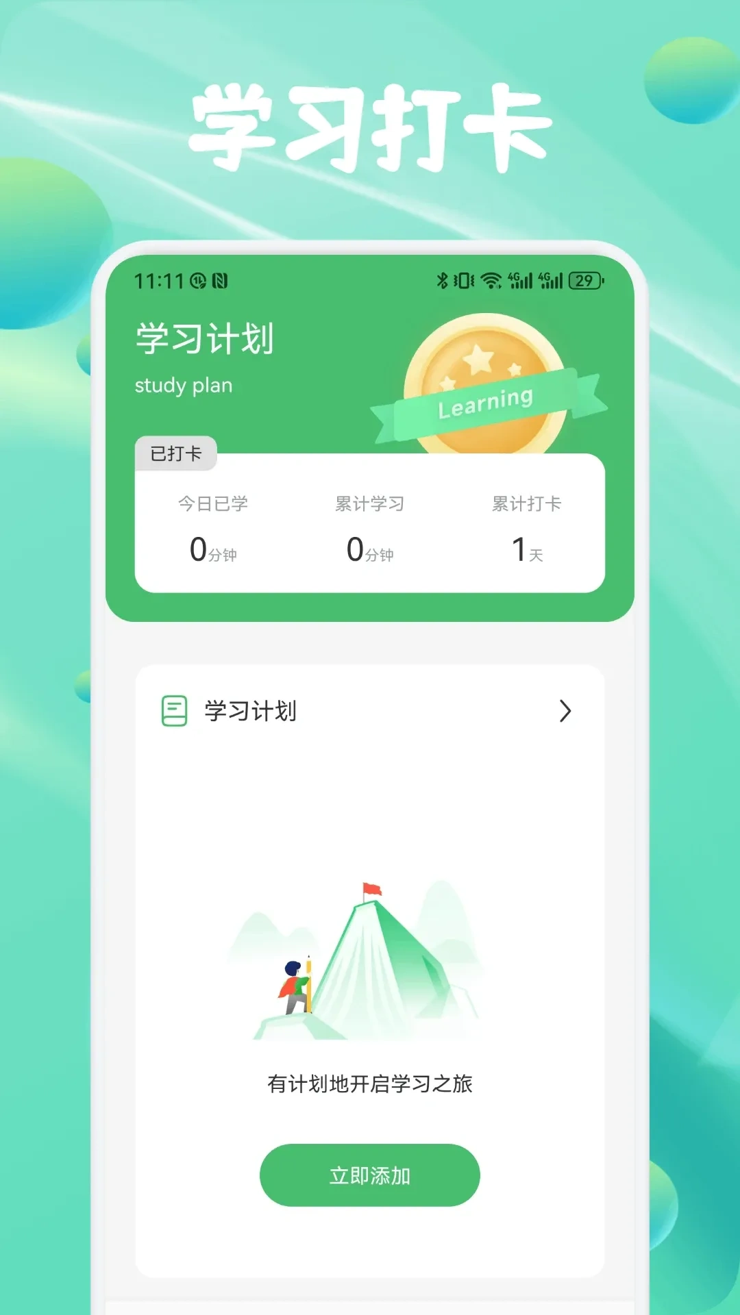 开始学习:按“学-练-测-复”的流程完成每天的任务,系统会自动安排新词学习和旧词复习。