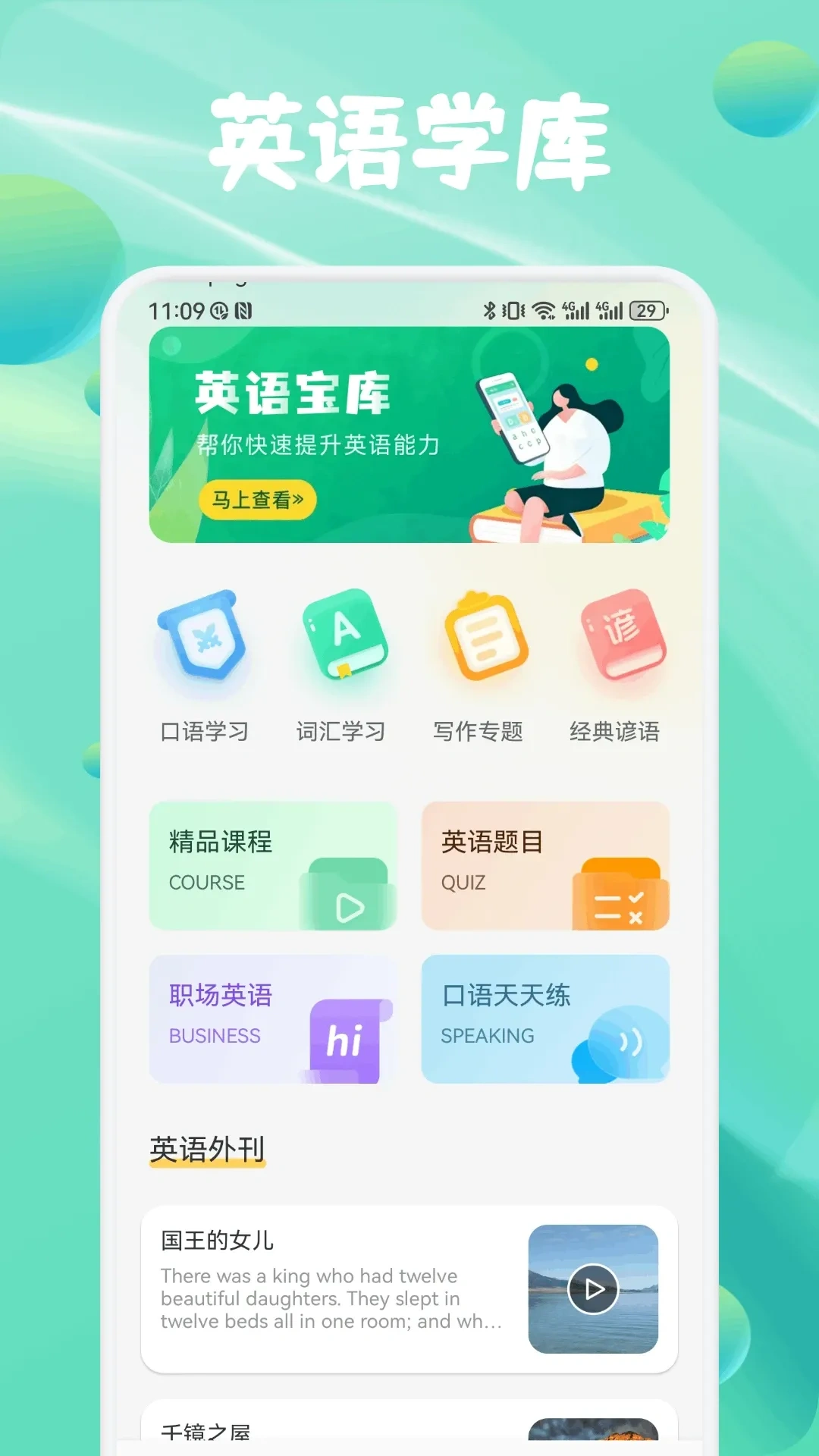 单词磨耳朵:支持离线播放单词和释义,上下学路上、通勤的时候都能听,利用碎片时间复习。